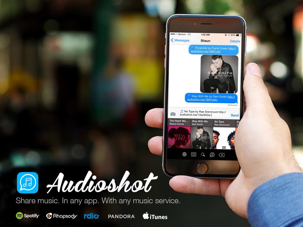 Send an AudioShot© to share songs through Snapchat, Instagram, Facebook Messenger, WhatsApp and more.