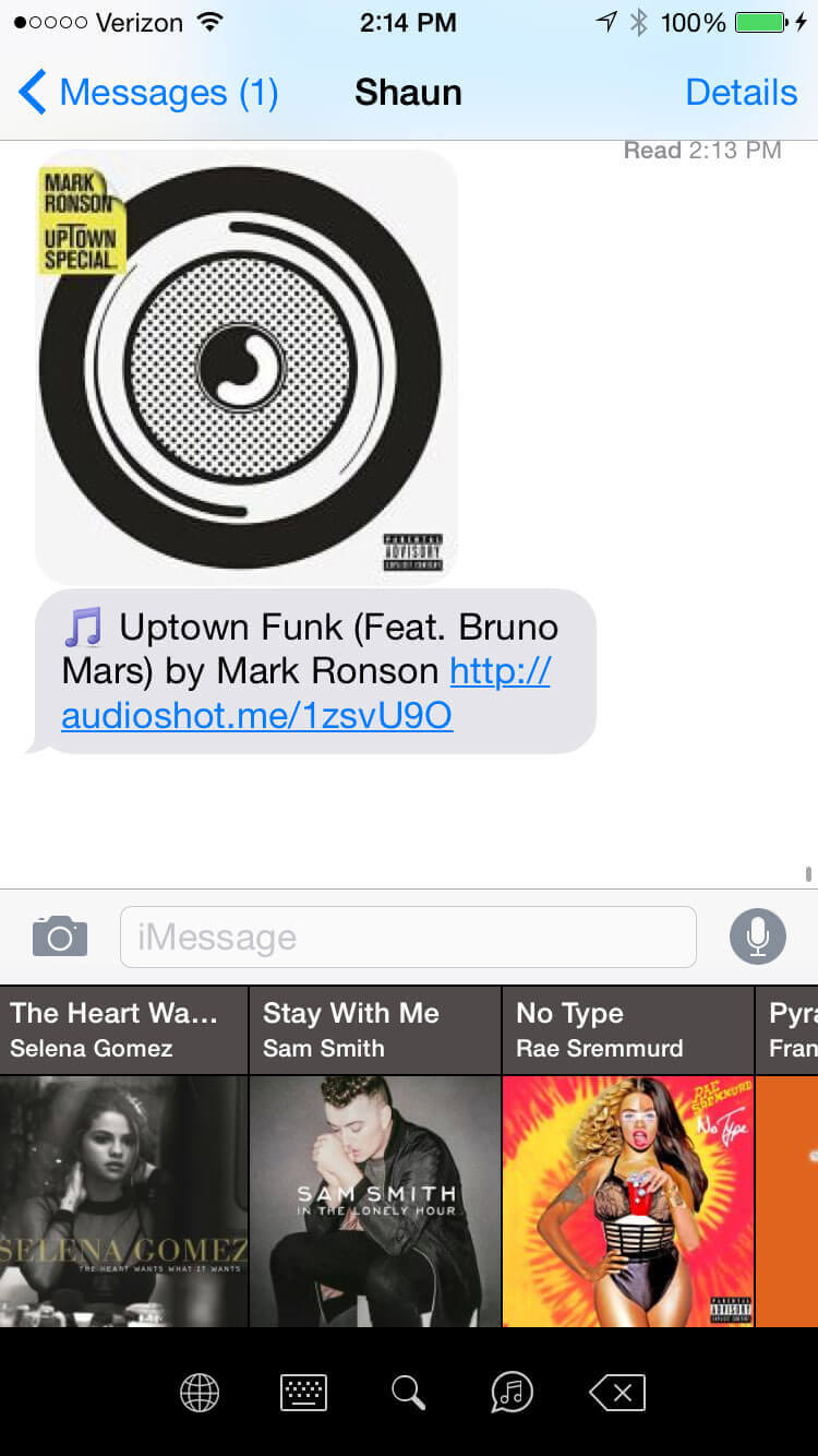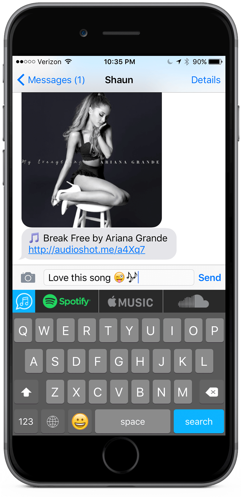 Send music in WhatsApp, Facebook Messenger, SnapChat, Instagram, and more...